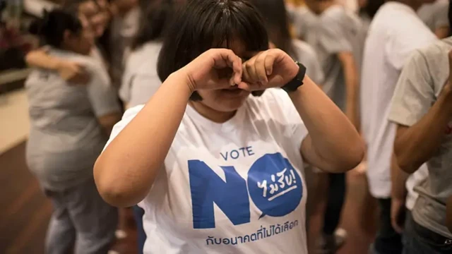 ฝ่ายสนับสนุนประชาธิปไตยแสดงความผิดหวังภายหลังทราบผลประชามติ 7 ส.ค. 2559 ซึ่งประชาชนกว่า 16 ล้านคนลงมติ “เห็นชอบ” ร่างรัฐธรรมนูญ ส่วน 10 ล้านคน “ไม่เห็นชอบ”