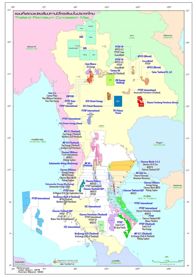 อย่างไรก็ตาม ระหว่างที่สองรัฐบาลกำลังดำเนินการเจรจาเรื่องผลประโยชน์ทางพลังงานในพื้นที่ทับซ้อนและการแบ่งเขตทางทะเลตามที่ตกลงกันไว้ใน MOU 44 ก็พบว่าพื้นที่ดังกล่าวมีการแบ่งแปลงพื้นที่สัมปทานปิโตรเลียมไปแล้ว ซึ่งสามารถเรียกดูได้จากเว็บไซต์ของกรมเชื้อเพลิงธรรมชาติ กระทรวงพลังงาน