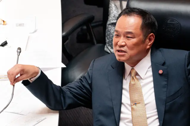 ด้านนายอนุทิน ชาญวีรกุล นายกรัฐมนตรีและรัฐมนตรีว่าการกระทรวงมหาดไทย ให้สัมภาษณ์เมื่อวานนี้ (15 ต.ค.) ถึงการปราบปรามแก๊งค์สแกมเมอร์ว่า ได้มีการตั้งคณะกรรมการแล้ว และได้มอบหมายให้ พล.ต.อ.เพิ่มพูน ชิดชอบ ที่ปรึกษานายกรัฐมนตรี ดูแลเรื่องนี้ แต่ไม่ได้มีการพูดถึงในประเด็นการร่วมมือกับนานาชาติในการคว่ำบาตรกัมพูชา นอกจากบอกเพียงว่า “เป็นหนึ่งในเงื่อนไขที่ไทยเสนอให้กัมพูชาต้องปฏิบัติอยู่แล้ว”