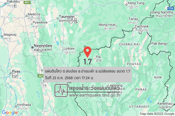แผ่นดินไหวขนาด-17-ตสบป่อง-อปางมะผ้า-จ.แม่ฮ่องสอน-2025-10-23-17:24:36-ตามเวลาประเทศไทย-|-  -regionบริเวณศูนย์กล