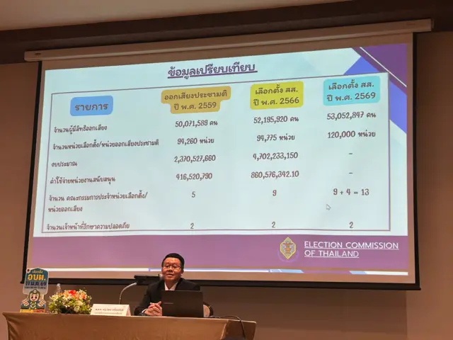 - เลือกตั้งและประชามติ 2569 ผู้มีสิทธิออกเสียง Fifty three.05 ล้านคน (ประมาณการณ์) จำนวนหน่วยเลือกตั้ง/หน่วยออกเสียง 120,000 หน่วย ใช้งบประมาณ 9,000 ล้านบาท ทั้งนี้ประมาณการณ์เบื้องต้นว่า หากมีผู้มีสิทธิออกเสียง 800 คน/หน่วย ค่าใช้จ่ายจะอยู่ที่อัตรา 41,000 บาท/หน่วยเลือกตั้ง (บนพื้นฐานว่าใช้บัตร 3 ใบ อุปกรณ์ต่าง ๆ 3 ชุด)
