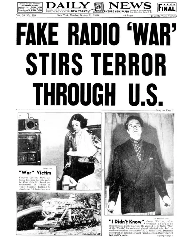 ในปี 1938 การนำนิยายวิทยาศาสตร์มาดัดแปลงเป็นละครวิทยุครั้งหนึ่งได้ก่อให้เกิดความตื่นตระหนกอย่างกว้างขวาง จนกลายเป็นหนึ่งในการออกอากาศที่อื้อฉาวที่สุดในประวัติศาสตร์