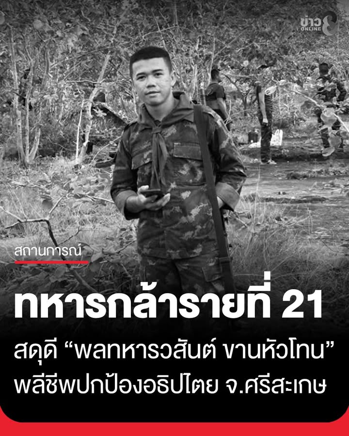 สดุดีวีรบุรุษ ทหารกล้า รายที่ 21 “พลทหารวสันต์ ขานหัวโทน” สังกัดกองพันทหารราบที่ 3 กรมทหารราบที่ 13 (ร.13 พัน.3) ค่ายเจ้าพระยาสุรวงศ์วัฒนศักดิ์ จ.อุดรธานี พลีชีพระหว่างปฏิบัติหน้าที่สู้รบในพื้นที่ จ.ศรีสะเกษ ชายแดนไทย-กัมพูชา ชายแดนไทยกัมพูชา ทหารพลีชีพ ข่าวช่อง8 ข่าวออนไลน์ช่อง8 RSS) ที่มา : ข่าวช่อง8เรื่องที่เกี่ยวข้อง:มหาวิทยาลัยสงขลานครินทร์ ขอเชิญร่วมโครงการ PSU VOLUNTEER จิต✅ เปิดนาที! อีกมุม"ดัมพ์รถบรรทุก" ชนสะพานลอยถล่ม ทับรถกระบะบสวัสดีวันพฤหัสบดี 🤍🤍🤍 ดีด้วยการสั่งสมสุตตะ เพื่อการฝึกฝนตน 2025-12-18 00:36:00ปปชสงขลา เติมน้ำมันรถเอกชน สำนักงานคณะกรรมการป้องกันและปราบปรามการทุจริตแห่งชาติสงขลา จี้ถาม องค์การบริหารส่วนจังหวัด ปม "เติ 2025-12-18 13:36:00โฆษก รบ.เผยผลประชุมต้านสแกมออนไลน์ ดึง 60 ชาติหนุนแถลงการณ์ฯกรุงเทพฯ- จีนชื่นชมบทบาทไทยรวบ 43 ต่างด้าวกลางป่า เตรียมไปมาเลเซีย 19 ธ.ค📮 ช่วยชีวิตสำเร็จ หลังกลืนสายรัดข้อมือนักท่องเที่ยว เตรียมคืแผ่นดินไหวขนาด 2.0 ประเทศเมียนมา 2025-12-18 21:39:40 ตามเวลาประเทศไทย | วันศุกร์ที่ 19 ธันวาคม พ.ศ. ...เปิดวินาที ถนนหน้าโรงพยาบาลวชิรพยาบาล ทรุดตัว ผู้เรียบเรียง XmasUser See author's ให้คะแนนความพอใจของคุณ : 0 / 5 คะแนน 0 คุณให้คะแนน: เรื่องที่น่าสนใจ บ้านเขาพลูบางสักกันตัง จังหวัดตรังเผยภาพล่าสุด “บะลาโกล” เสือโคร่งตาเดียว โชว์ความฟิต แฟนคลับลบ้านปางปง-ปางทรายเวียงตาลห้างฉัตร จังหวัดลำปางอนุทิน ลุยหาดใหญ่ครั้งที่ 6 กินข้าวกล่อง เคลียร์ใจ อส. ข่ ประเทดอุดรธานี เช้านี้ 1 ธ.ค.2568 อุณหภูมิต่ำสุด 13 °C อากาศบ้านท่างามท่างิ้วเมืองนครศรีธร จังหวัดนครศรีธรรมราชเตรียมเข้าสู่ปีใหม่…ด้วยอะไรใหม่ๆบ้านจาเราะแปธารโตธารโต จังหวัดยะลา ต้นขนุนทวาย กิ่งทาบ สายพันธุ์เเท้ ฿115.00 สั่งซื้อผ่าน Shopee ต้นชะอม กิ่งตอน หนามน้อย พันธุ์หนามสั้น พร้อมปลูก ฿89.00 สั่งซื้อผ่าน Shopee ต้นทุเรียนหมอนทอง กิ่งพันธุ์ เสียบยอด ฿150.00 สั่งซื้อผ่าน Shopee ต้นฝรั่งกิมจู กิ่งตอน พร้อมปลูกได้เลย ฿59.00 สั่งซื้อผ่าน Shopee ต้นมะนาวแป้นพวง บ้านแพ้ว กิ่งตอน พร้อมปลูก ฿125.00 สั่งซื้อผ่าน Shopee ต้นมะม่วงน้ำดอกไม้สีทอง น้ำดอกไม้เบอร์4 กิ่งทาบ พร้อมปลูก ฿99.00 สั่งซื้อผ่าน Shopee ต้นมะยงชิดพันธุ์ทูลเกล้า เสียบยอด กิ่งพันธุ์ พร้อมปลูก ฿50.00 สั่งซื้อผ่าน Shopee ต้นมะเดื่อฉิ่ง มะเดื่อชุมพร ลูกฉิ่ง กิ่งตอน ฿80.00 สั่งซื้อผ่าน Shopee ต้นละมุดสาลี่ยักษ์ เสียบยอด ฿50.00 สั่งซื้อผ่าน Shopee ต้นสะเดามันทวาย กิ่งตอน สายพันธุ์เเท้ ฿95.00 สั่งซื้อผ่าน Shopee ต้นแก้วมังกร พันธุ์เวียดนาม เนื้อสีแดง เนื้อสีขาว ฿7.00 สั่งซื้อผ่าน Shopee มะปรางสุวรรณบาตร กิ่งพันธุ์ เสียบยอด ฿99.00 
