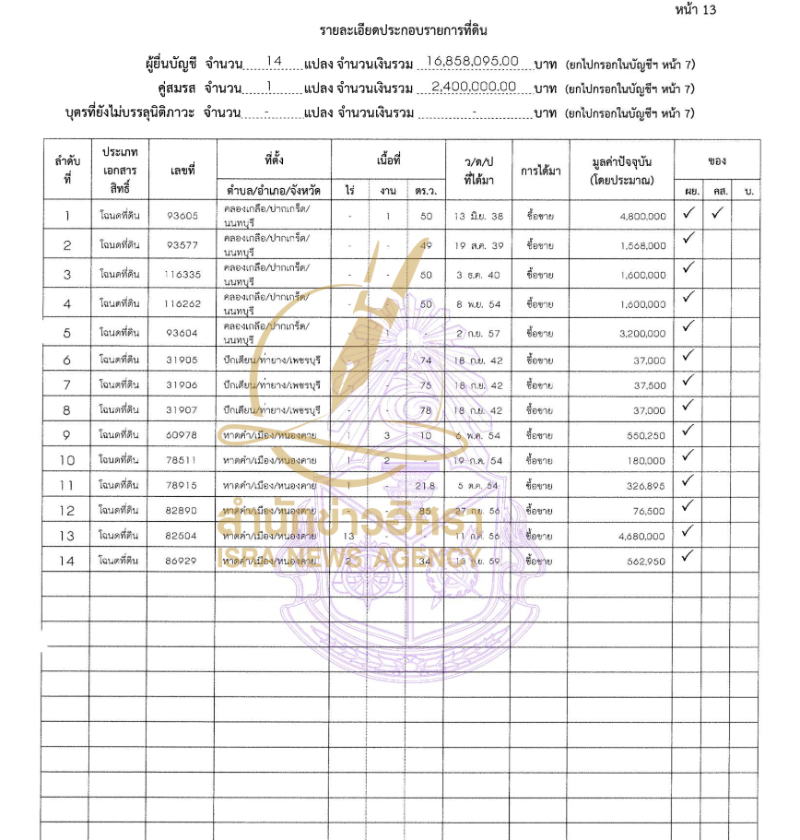 สำนักงานคณะกรรมการป้องกันและปราบปรามการทุจริตแห่งชาติ เปิดทรัพย์สินผู้ดำรงตำแหน่งระดับสูง ‘วันทนีย์ วัฒนะ' อดีตปลัดกรุงเทพมหานคร ทรัพย์สิน 50 ล. ที่ดิน 14 แปลง 16 ล. เงินฝาก 15 ล. รายได้ 1.4 ล./ปี