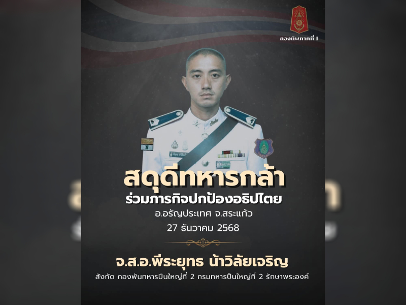 กองทัพภาคที่ 1 ขอสดุดีทหารกล้า ร่วมเป็นส่วนหนึ่งในภารกิจปกป้องอธิปไตยของไทย ในสถานการณ์ชายแดนไทย-กัมพูชา ทั้งนี้จะดูแลจัดพิธีศwอย่างสมเกียรติ และดูแลสิทธิต่างๆให้กับครอบครัวอย่างครบถ้วนต่อไป