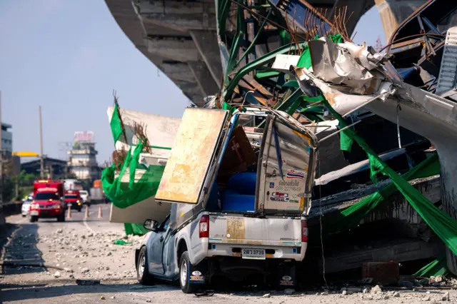 “ไม่มีอะไรเตือนล่วงหน้า แต่ว่าจังหวะล้ม มันล้มเหมือนโดมิโนลงมาเลย ตรงทางฝั่งขวาล้มเอนลงมาก่อน แล้วฝั่งนี้ก็แท-งลงมา แล้วก็มีเสียงดังเหมือนมีอะไรถล่ม” ศิวนาถ ใจซื่อกุล หนึ่งในผู้เห็นเหตุการณ์บอกกับผู้สื่อข่าวพิเศษของ.