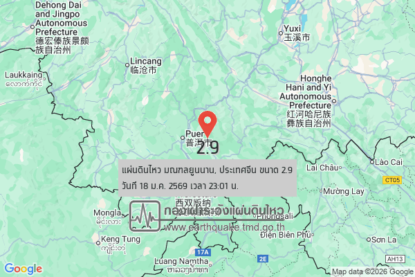 แผ่นดินไหวขนาด 2.9 มณฑลยูนนาน, ประเทศจีน 2026-01-18 23:01:22 ตามเวลาประเทศไทย ingบริเวณศูนย์กลาง มณฑลยูนนาน, ประเทศจีนYunnan, China Foundation Timeเวลา 2026-01-18 16:01:22 ตามเวลามาตรฐาน UTC2026-01-18 23:01:22 ตามเวลาประเทศไทย พ.ศ. 2569 Magnitudeขนาด 2.9 Epicenterจุดศูนย์กลาง 22.821°N , 101.363°E Google Maps Depthความลึก 10 Km. (กิโลเมตร) Routeทิศทาง ทางทิศตะวันออกเฉียงเหนือของ ต.ริมโขง อ.เชียงของ จ.เชียงราย ประมาณ 292 กม. ข้อมูลอื่นๆ Submit Time : 2026-01-18 23:06:39 ตามเวลาประเทศไทย 2026-01-18 16:06:00 ——— ที่มา : กองเฝ้าระวังแผ่นดินไหว ——— www.ด่วน.com อัพเดท ข่าวด่วน ข่าวร้อนประเด็นดังทุกภาคทั่วไทย 🇹🇭เรื่องที่เกี่ยวข้อง:นราธิวาส ศwทิ้งน้ำ ตำรวจสอบสวนกลาง รวบทีมฆ่-าอริโยนศw 2026-01-17 07:26:00เบาหวานกำเริบ คุณลุงวัย 64 ปี ขับรถพ่วง 22 ล้อ จะไปส่งของที 2026-01-18 10:21:00✅ 133 ปี เมืองอุดรธานี 18 มกราคม 2569 F 🌊🌱 ทช. ผนึกชุมชนเกาะพระทอง เฝ้าระวังหลุมฟักไข่เต่า เสริมพล📢 มีเสียงเตือนดังที่โทรศัพท์ อย่าเพิ่งตกใจ! เป็นการทดสอบระบบMUST-HAVE บิวตี้ไอเทมสี Pantone ประจำปี 2026 “Cloud Dancer”ตามหา "ขมิ้น" สุนัขหน้าโหด แต่เชื่อง หายไปจากนครอินทร์ จ.นนท 2026-01-17 14:21:00อนุทิน หาเสียงชุมพร ขอโอกาสภูมิใจไทย ยกจังหวัด ข่าวใต้แลได้อากาศหนาวเย็นทำให้บรรยากาศท่องเที่ยวยอดดอยยังคึกคัก วันนี้ยอ ผู้เรียบเรียง Pazzle See author's ให้คะแนนความพอใจของคุณ : 0 / 5 คะแนน 0 คุณให้คะแนน: เรื่องที่น่าสนใจ PR เริ่มต้นปี 2026 ด้วยเทศกาลแจ๊สที่ดีที่สุดในไทย TIJC 20บ้านโนนทองโนนทองนายูง จังหวัดอุดรธานีบ้านเขาชกเขาซกหนองใหญ่ จังหวัดชลบุรีบ้านอมเม็งกองแขกแม่แจ่ม จังหวัดเชียงใหม่ เสียงสะอื้นร่ำร้อง “น้องหญิง-ท่านพี่”ก็มาแผ่นดินไหวขนาด 1.9 ประเทศเมียนมา 2026-01-11 01:52:17 ตามเวลาประเทศไทย | วันอาทิตย์ที่ 11 มกราคม พ.ศ. 2569บ้านโคกเอาะทับช้าง นาทวี จังหวัดสงขลาบ้านห้วยลึกเขาไม้แก้วบางละมุง จังหวัดชลบุรี ต้นขนุนทวาย กิ่งทาบ สายพันธุ์เเท้ ฿115.00 สั่งซื้อผ่าน Shopee ต้นชะอม กิ่งตอน หนามน้อย พันธุ์หนามสั้น พร้อมปลูก ฿89.00 สั่งซื้อผ่าน Shopee ต้นทุเรียนหมอนทอง กิ่งพันธุ์ เสียบยอด ฿150.00 สั่งซื้อผ่าน Shopee ต้นฝรั่งกิมจู กิ่งตอน พร้อมปลูกได้เลย ฿59.00 สั่งซื้อผ่าน Shopee ต้นมะนาวแป้นพวง บ้านแพ้ว กิ่งตอน พร้อมปลูก ฿125.00 สั่งซื้อผ่าน Shopee ต้นมะม่วงน้ำดอกไม้สีทอง น้ำดอกไม้เบอร์4 กิ่งทาบ พร้อมปลูก ฿99.00 สั่งซื้อผ่าน Shopee ต้นมะยงชิดพันธุ์ทูลเกล้า เสียบยอด กิ่งพันธุ์ พร้อมปลูก ฿50.00 สั่งซื้อผ่าน Shopee ต้นมะเดื่อฉิ่ง มะเดื่อชุมพร ลูกฉิ่ง กิ่งตอน ฿80.00 สั่งซื้อผ่าน Shopee ต้นละมุดสาลี่ยักษ์ เสียบยอด ฿50.00 สั่งซื้อผ่าน Shopee ต้นสะเดามันทวาย กิ่งตอน สายพันธุ์เเท้ ฿95.00 สั่งซื้อผ่าน Shopee ต้นแก้วมังกร พันธุ์เวียดนาม เนื้อสีแดง เนื้อสีขาว ฿7.00 สั่งซื้อผ่าน Shopee มะปรางสุวรรณบา
