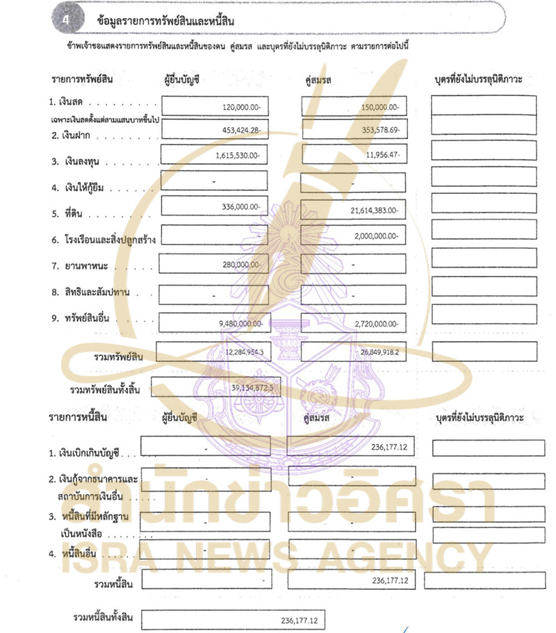 นางวาสนา แจ้งมีหนี้สินทั้งสิ้่น 236,177.12 บาท ประกอบด้วย เงินเบิกเกินบัญชี