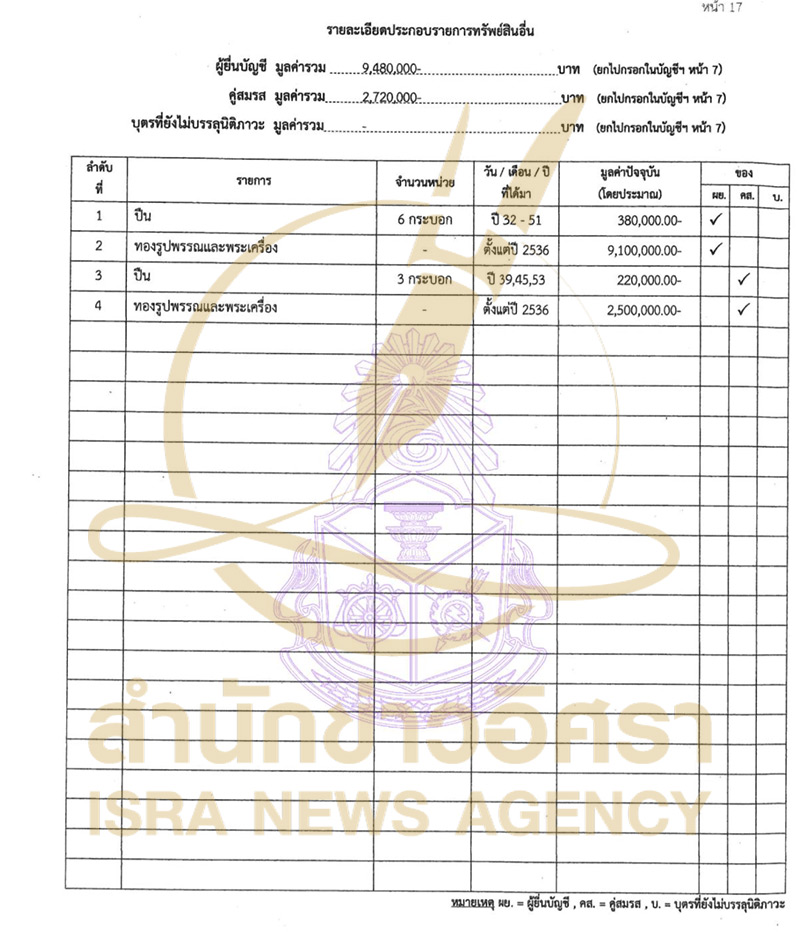 สำนักข่าวอิศรา . รายงานว่า เมื่อเร็วๆ นี้ สำนักงานคณะกรรมการการป้องกันและปราบการทุจริตแห่งชาติ ( ป.ป.ช. ) เปิดเผยบัญชีแสดงรายการทรัพย์สินและหนี้สิน นายสุเมธ ธีรนิติ ผู้ว่าราชการจังหวัดสิงห์บุรี กรณีพ้นจากการเป็นเจ้าหน้าที่ของรัฐ เมื่อวันที่ 1 ต.ค. 2568