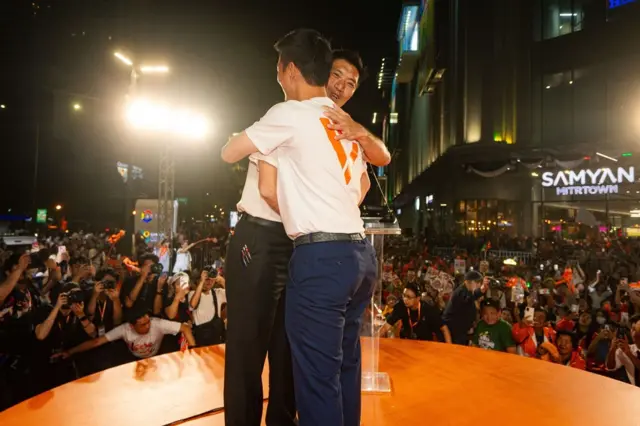 “แต่ผมเชื่ออย่างเดียวว่าถ้ามันจะไปต่อ มันต้องได้มากกว่าเดิมอย่างมีนัยสำคัญ คือการได้น้อยกว่าเดิมหรือเท่าเดิมไม่อยู่ในทางเลือกเลย ผมต้องวางที่ 180-200 เสียง นี่คือขั้นต่ำ ผมคิดว่ารักษาตรงนี้ได้ โมเมนตัม (momentum – แรงเหวี่ยง) มันไม่ได้เสียมาก แน่นอนบางส่วนอาจจะผิดหวัง แต่อย่างน้อยมันยังมองเห็นความหวังว่าเฮ้ย ครั้งหน้าเขาถึงแน่ อะไรอย่างนี้ เพื่อให้เราได้ทำงานต่อ มันถึงสำคัญ 180-200 เสียง ผมคิดว่าต่ำกว่านี้ไม่ได้ ถ้าต่ำกว่านี้โมเมนตัมอาจจะเสีย แต่แน่นอนว่าเป้าหมายของเรา ก็ยังมองว่าพยายามไปให้ไกลกว่านั้นและจัดตั้งรัฐบาลให้ได้”