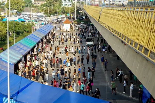 เช่นเดียวกับที่ศูนย์นันทนาการวัดเวฬุราชิณ แขวงบางยี่เรือ ที่มีผู้ไปเข้าคูหาตั้งแต่เช้า
