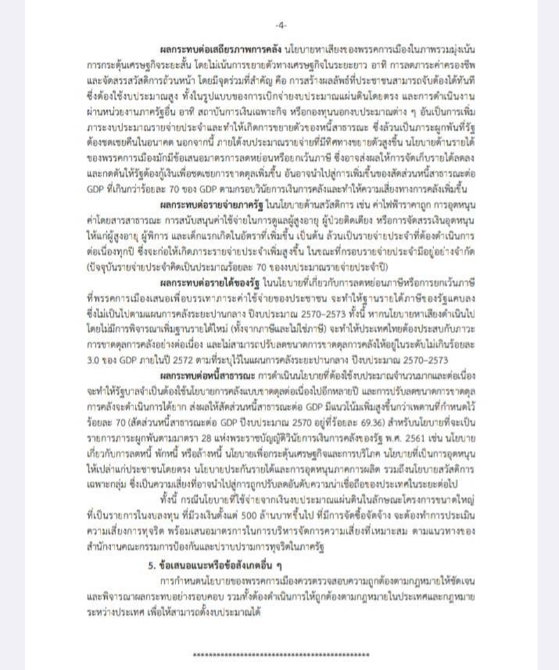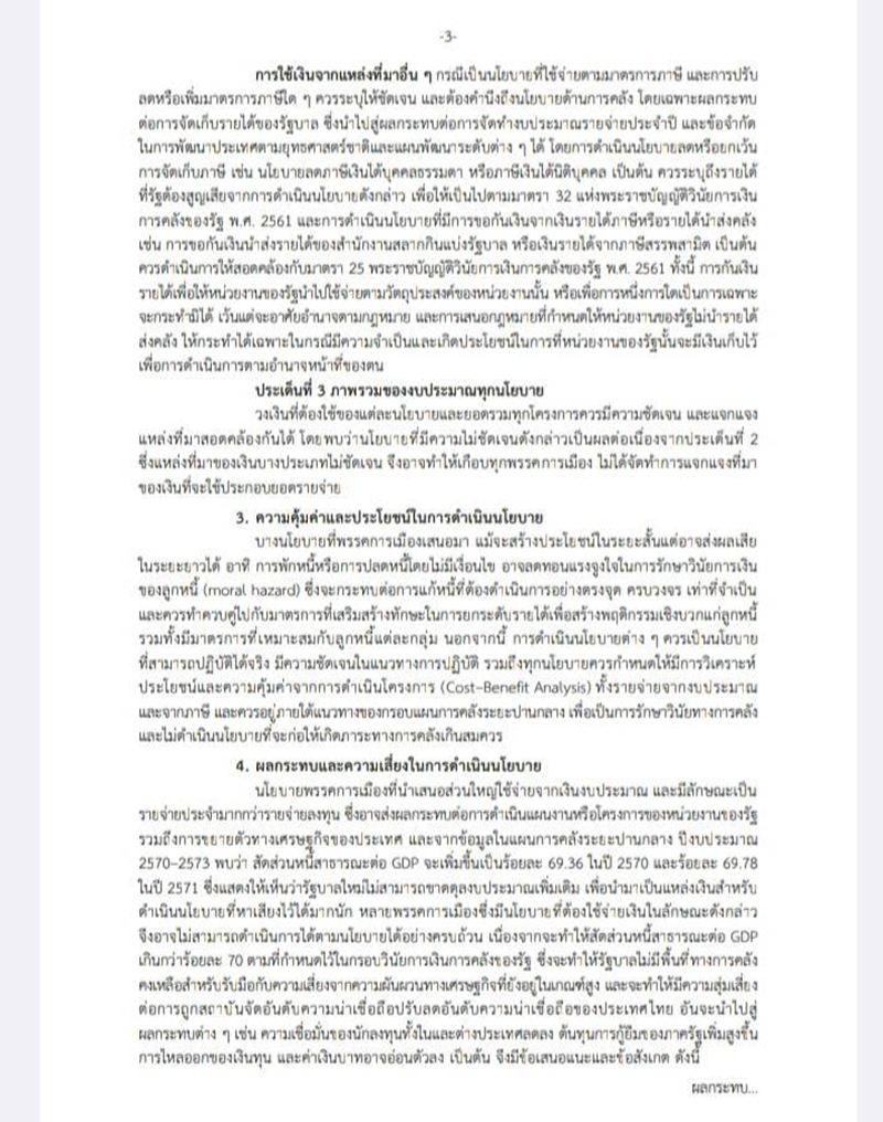 ‘กกต.' เผยแพร่ ข้อสังเกตนโยบายใช้เงิน 51 พรรคการเมือง 5 ข้อ 4 หน้า ชี้ ไม่ระบุแหล่งที่มาของเงิน ระบุ ควรกำหนดแหล่งที่มาของเงินให้ชัดเจน บางนโยบายสร้างประโยชน์ระยะสั้น-ส่งผลเสียระยะยาว