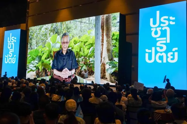 “คุณอาจจะเห็นขาไก่ ปลาทอด แต่เราเห็นความศรัทธา…เราจะขอตอบแทนขาไก่ด้วยการตั้งประเทศไทยที่เป็นธรรม เราจะตอบแทนขนุนด้วยการสร้างประเทศไทยอันเป็นประชาธิปไตย เราจะตอบแทนหมึกแห้งด้วยประเทศไทยที่ก้าวหน้า” เขากล่าวบนเวทีท่ามกลางผู้สนับสนุนนับพันคน
