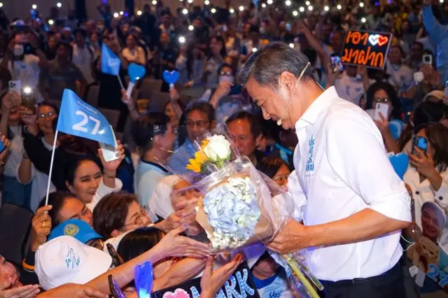 ในการปราศรัยใหญ่ส่งท้ายของพรรคประชาธิปัตย์ (ปชป.) ที่อาคารวันแบงค็อกฟอรั่ม บรรยากาศเต็มไปด้วยวามคึกคักโดยมีผู้สนับสนุนพรรคสีฟ้ามาร่วมฟังปราศรัยไม่น้อยกว่าหนึ่งพันคนซึ่งมาร่วมส่งเสียงเชียร์การหวนกลับมายังพรรคของนายอภิสิทธิ์ เวชชาชีวะ