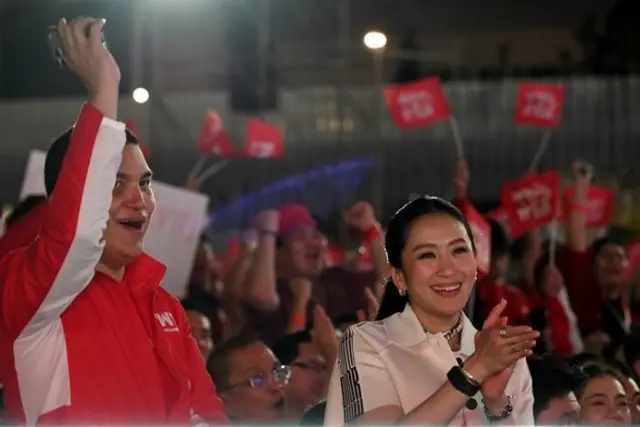 แพทองธาร ชินวัตร อดีตนายกฯ คนที่ 31 ร่วมฟังเวทีปราศรัยและขึ้นถ่ายรูปบนเวทีพร้อมกับผู้ปราศรัยของพรรค