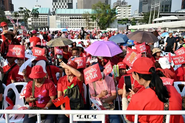 “พี่น้องเสื้อแดง … กลับมาเคียงข้างกัน กลับมาเลือกพรรคที่เคยเลือก กลับมาเดินในเส้นทางที่เคยเดิน กลับมาจับมือกับมือที่เคยจับกัน” เขากล่าว