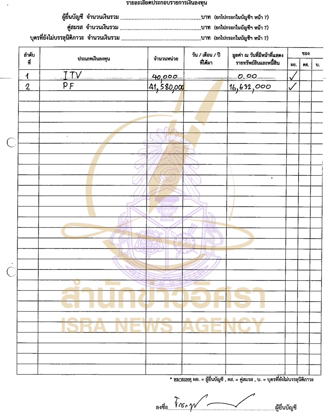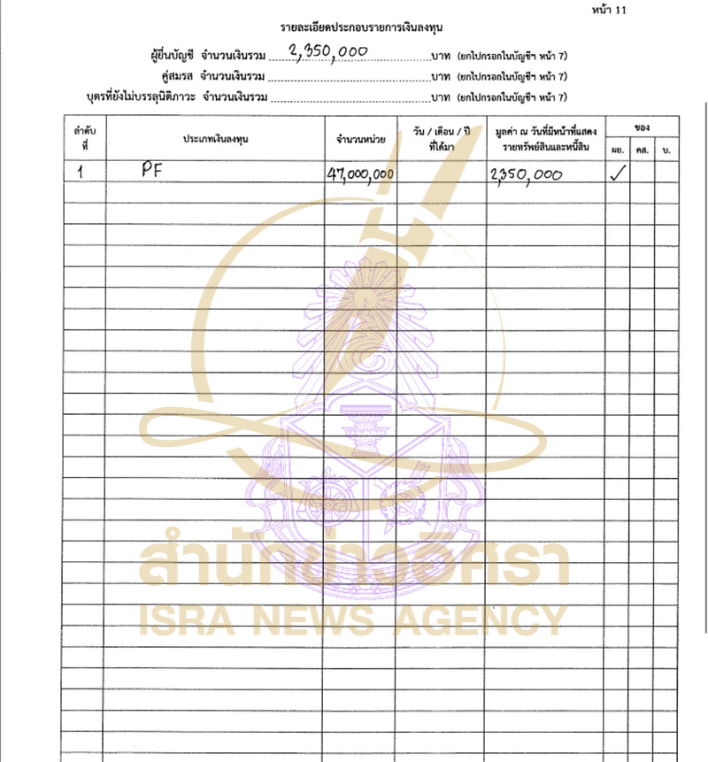 บุตรที่ยังไม่บรรลุนิติภาวะ แจ้งมีทรัพย์สิน 281,286.05 บาท แบ่งเป็นเงินฝาก 31,385.07 บาท และสิทธิและสัมปทาน 249,900.98 บาท