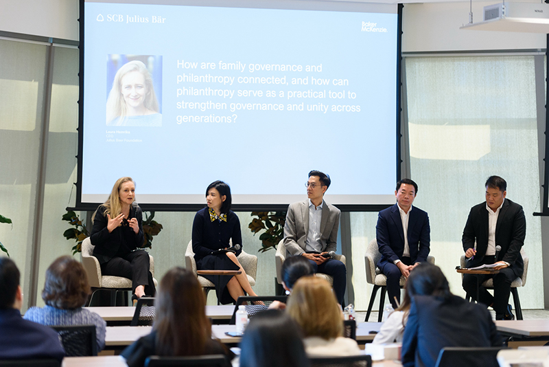 ประเด็นด้านกฎหมายและภาษีเป็นอีกหนึ่งเสาหลักสำคัญในการปกป้องความมั่งคั่ง โดย นายปัญญา สิทธิสาครศิลป์ Accomplice (Tax and Wealth Management) บริษัท Baker McKenzie (ประเทศไทย) เน้นย้ำถึงความสำคัญของการเตรียมความพร้อมด้านกฎหมายและภาษีตั้งแต่แรกเริ่ม โดยเฉพาะเรื่องโครงสร้างการถือครองสินทรัพย์ ความเสี่ยงด้านภาษี และมาตรการกำกับดูแลที่เกี่ยวข้อง จะมีบทบาทสำคัญต่อการลดความเสี่ยงให้แก่ครอบครัวผู้มั่งคั่งระดับสูง นอกจากนี้อีกหนึ่งประเด็นที่ได้รับความสนใจ คือ การทำกิจกรรมเพื่อสังคม (Philanthropy) ซึ่งถูกมองว่าเป็นเครื่องมือด้านธรรมาภิบาลที่ช่วยเชื่อมโยงสมาชิกในครอบครัวต่างรุ่นเข้าด้วยกัน โดย นางลอร่า เฮมริก้า (Laura Hemrika) ประธานเจ้าหน้าที่บริหารของ Julius Baer Foundation อธิบายว่า การให้ที่มีโครงสร้างชัดเจนสามารถสร้าง ‘พื้นที่การเรียนรู้ที่เป็นกลาง’ ซึ่งช่วยเชื่อมโยงคนต่างรุ่นในครอบครัว สร้างเป้าหมายร่วมกัน และเสริมสร้างอัตลักษณ์ของครอบครัวให้แข็งแกร่งยิ่งขึ้น โดยเฉพาะในช่วงเวลาที่คนรุ่นใหม่ต้องการมีส่วนร่วมกับกิจกรรมที่สร้างผลกระทบเชิงบวกต่อสังคม