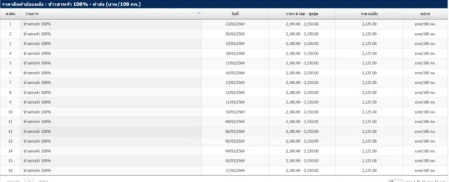 ขณะที่ข้อมูลราคาข้าวจากฐานข้อมูลของกระทรวงพาณิชย์ พบว่ามีทั้งที่คงเดิม เพิ่มขึ้น และลดลง เช่น ราคาข้าวเปลือกหอมมะลิมีการปรับเพิ่มขึ้น 100 บาท/ตัน นับจากก่อนสงคราม แต่ในขณะเดียวกันราคาข้าวเปลือกเจ้าก็ปรับลดลงเฉลี่ย 150 บาท/ตัน ส่วนราคาขายส่งข้าวสารเจ้า 100% และข้าวหอม ให้กับร้านค้าขายปลีก ยังคงราคาเฉลี่ยเท่าเดิมนับตั้งแต่ก่อนสงคราม