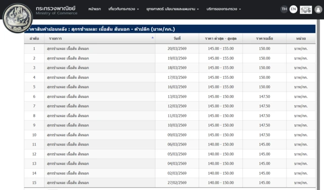 - เนื้อหมูทุกส่วน ยกตัวอย่างเช่น สันในหมู ปรับขึ้นจาก กก. ละ 132 บาท เป็น 136 บาท