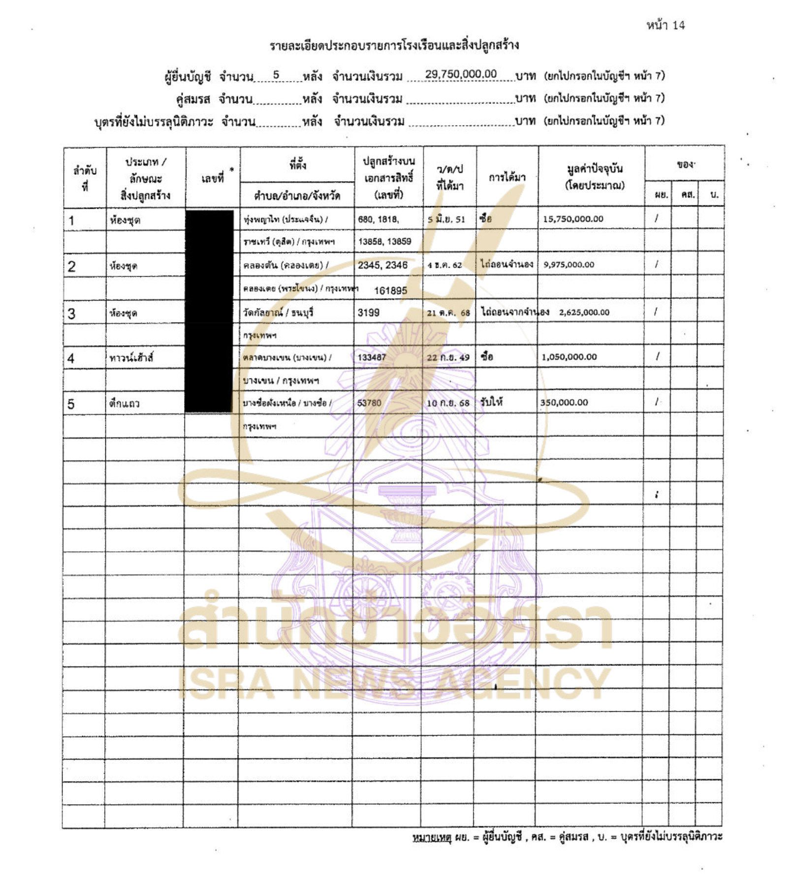 สำนักงานคณะกรรมการป้องกันและปราบปรามการทุจริตแห่งชาติ เปิดทรัพย์สิน ‘ทิพานัน ศิริชนะ' กรณีพ้นตำแหน่ง สส. 74.3 ล้านบาท สิ่งปลูกสร้าง 5 หลัง มูลค่ารวม 29.7 ล. สะสมพระเครื่องดัง-ทองคำแท่ง-กระเป๋าแบรนด์เนมเพียบ เทียบช่วงรับตำแหน่งเพิ่ม 4 แสนเศษ