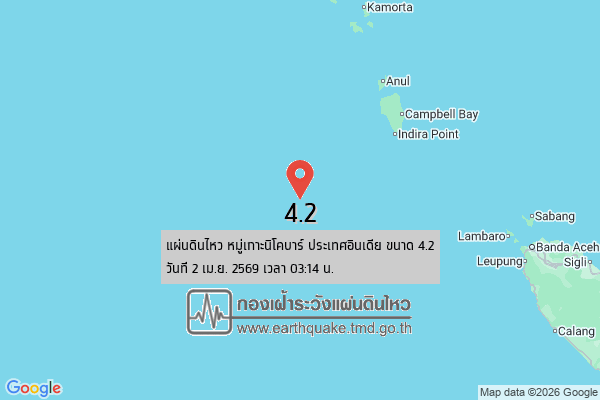 แผ่นดินไหวขนาด 4.2 หมู่เกาะนิโคบาร์ ประเทศอินเดีย 2026-04-02 03:14:05 ตามเวลาประเทศไทย Dilemmaบริเวณศูนย์กลาง หมู่เกาะนิโคบาร์ ประเทศอินเดียNicobar Islands, India Dilemma Starting up Timeเวลา 2026-04-01 20:14:05 ตามเวลามาตรฐาน UTC2026-04-02 03:14:05 ตามเวลาประเทศไทย พ.ศ. 2569 Magnitudeขนาด 4.2 Epicenterจุดศูนย์กลาง 6.064°N , 92.784°E Google Maps Depthความลึก 10 Km. (กิโลเมตร) Directionทิศทาง ทางทิศตะวันตกเฉียงใต้ของ อ.เมือง จ.จังหวัดภูเก็ต ประมาณ 651 กม. ข้อมูลอื่นๆ Put up Time : 2026-04-02 03:59:36 ตามเวลาประเทศไทย 2026-04-01 20:59:00 ——— ที่มา : กองเฝ้าระวังแผ่นดินไหว ——— www.ด่วน.com อัพเดท ข่าวด่วน ข่าวร้อนประเด็นดังทุกภาคทั่วไทย 🇹🇭เรื่องที่เกี่ยวข้อง:"มือยิv" ซัดทอด "ชมพูนุท" บงการฆ่-า "โฟร์แมน" สุดเหี้ยมสั่งยิvซ้ำรอบ 2 |ลุยชนข่าว |2เม.ย.69เลขาฯครม.เข้าพบนายกฯ หารือเตรียมพร้อมประชุมครม.นัดพิเศษ 6 เมบรรยากาศ CIB x สสส. จัดกิจกรรม “Cyber Well-organized” ปกป้องผู้สูงอายแถลงการณ์พรรคประชาชาติ กรณี สส.กมลศักดิ์ ลีวาเมาะ ถูกคนร้าชาวแม่ฮ่องสอน ร่วมสืบสานวัฒนธรรม จัดงานประเพณี "ปอยส่างลอง"ตำรวจน้ำรวบไต๋เรือซุกปืนเถื่อน คาปากร่องแม่น้ำปัตตานี >> ราย 2026-04-02 17:50:00🏆 รางวัลดีเด่น ภายใต้โครงการปลูกจิตสำนึกอนุรักษ์ธรรรมชาติและ"ทนาย" ซิ่งรถชน 3 แม่ลูก หัวร้อนด่า คนแก่ - เด็ก 4 ขวบ แฉวีรกรรมเพียบ |ลุยชนข่าว |2เม.ย.69บึงสวีตติงส์ บนเกาะอิลิวเทราในหมู่เกาะบาฮามาส คือโลกลี้ลับใต ผู้เรียบเรียง Pazzle See author's ให้คะแนนความพอใจของคุณ : 0 / 5 คะแนน 0 คุณให้คะแนน: เรื่องที่น่าสนใจ บ้านแม่น้ำคู้แม่น้ำคู้ปลวกแดง จังหวัดระยองบ้านวังเป่งน้ำทูนท่าลี่ จังหวัดเลยบ้านผานกกกโป่งแยงแม่ริม จังหวัดเชียงใหม่บ้านหนองบางลิ่นถิ่นทองผาภูมิ จังหวัดกาญจนบุรี บ้านหาดชมพูท่าตอนแม่อาย จังหวัดเชียงใหม่บ้านละโอศรีบรรพตศรีสาคร จังหวัดนราธิวาสบ้านโคกเอาะทับช้าง นาทวี จังหวัดสงขลาบ้านเหนือคลองทุ่งโพธิ์จุฬาภรณ์ จังหวัดนครศรีธรรมราช ต้นขนุนทวาย กิ่งทาบ สายพันธุ์เเท้ ฿115.00 สั่งซื้อผ่าน Shopee ต้นชะอม กิ่งตอน หนามน้อย พันธุ์หนามสั้น พร้อมปลูก ฿89.00 สั่งซื้อผ่าน Shopee ต้นทุเรียนหมอนทอง กิ่งพันธุ์ เสียบยอด ฿150.00 สั่งซื้อผ่าน Shopee ต้นฝรั่งกิมจู กิ่งตอน พร้อมปลูกได้เลย ฿59.00 สั่งซื้อผ่าน Shopee ต้นมะนาวแป้นพวง บ้านแพ้ว กิ่งตอน พร้อมปลูก ฿125.00 สั่งซื้อผ่าน Shopee ต้นมะม่วงน้ำดอกไม้สีทอง น้ำดอกไม้เบอร์4 กิ่งทาบ พร้อมปลูก ฿99.00 สั่งซื้อผ่าน Shopee ต้นมะยงชิดพันธุ์ทูลเกล้า เสียบยอด กิ่งพันธุ์ พร้อมปลูก ฿50.00 สั่งซื้อผ่าน Shopee ต้นมะเดื่อฉิ่ง มะเดื่อชุมพร ลูกฉิ่ง กิ่งตอน ฿80.00 สั่งซื้อผ่าน Shopee ต้นละมุดสาลี่ยักษ์ เสียบยอด ฿50.00 สั่งซื้อผ่าน Shopee ต้นสะเดามันทวาย กิ่งตอน สายพันธุ์เเท้ ฿95.00 สั่งซื้อผ่าน Shopee ต้นแก้วมังกร 