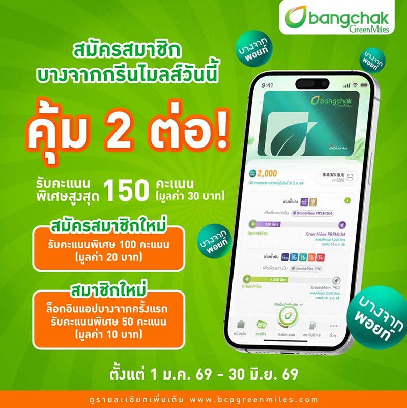 บางจากฯ ชวนสมาชิกกรีนไมลส์รับสิทธิ์ คืนพอยท์ตามส่วนต่างราคาน้ำมัน แบรนด์เดียวที่ “ขึ้นเท่าไหร่ คืนเท่านั้น” อีกหนึ่งมาตรการบรรเทาภาระผู้บริโภค ดูแลสมาชิกกว่า 1.8 ล้านราย คืนพอยท์แล้วกว่า 97 ล้านลิตร คิดเป็นมูลค่ากว่า 190 ล้านบาท ตั้งแต่เริ่มวิกฤตตะวันออกกลาง