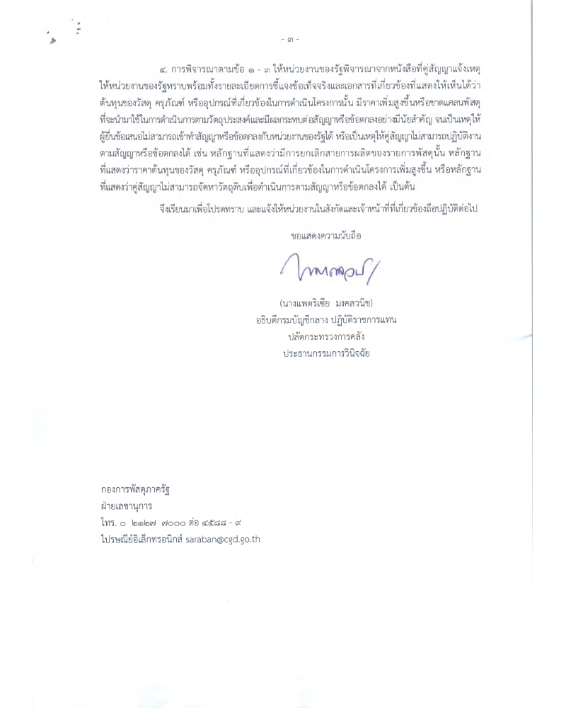 @ผู้รับจ้างมีหนังสือแจ้งไม่สามารถลงนามได้จากสถานการณ์ ไม่เข้าข่ายทิ้งงาน