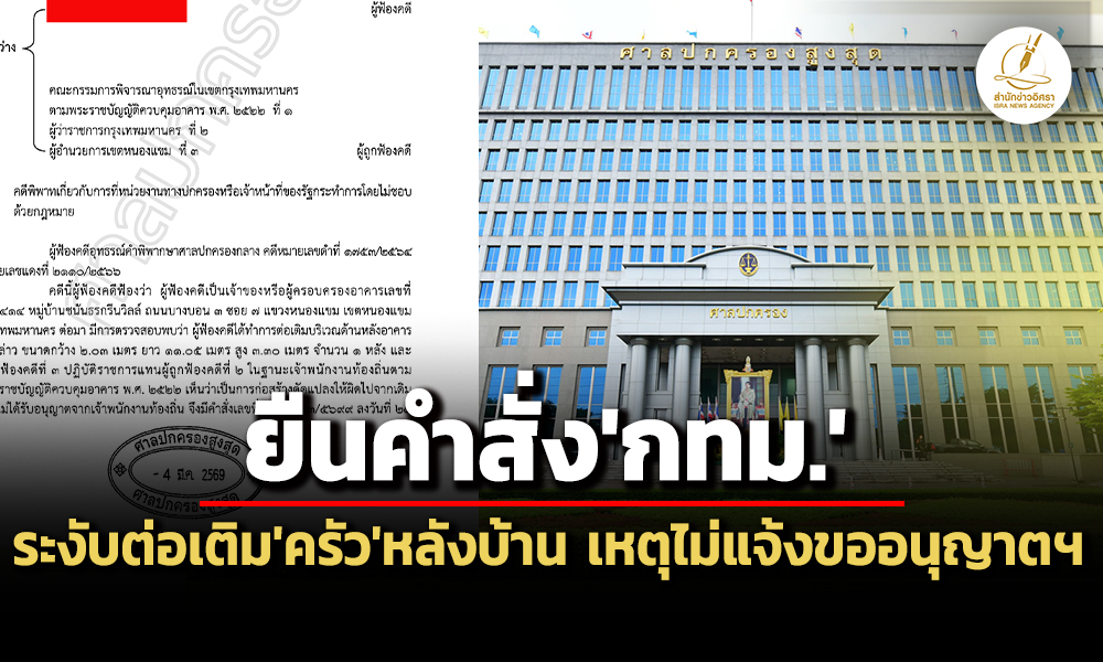 สำนักข่าวอิศรา . รายงานว่า เมื่อวันที่ 19 มี.ค.2569 ที่ผ่านมา ศาลปกครองสูงสุด ได้มีคำพิพากษาในคดีหมายเลขดำที่ อ.2334/2556 คดีหมายเลขแดงที่ อ.196/2569 ระหว่าง นางสาว ส. (ผู้ฟ้องคดี) และคณะกรรมการพิจารณาอุทธรณ์ในเขตกรุงเทพมหานคร ตาม พ.ร.บ.ควบคุมอาคาร พ.ศ.2522 (ผู้ถูกฟ้องคดีที่ 1) ,ผู้ว่าราชการกรุงเทพมหานคร (ผู้ถูกฟ้องคดีที่ 2) และผู้อำนวยการเขตหนองแขม (ผู้ถูกฟ้องคดีที่ 3) ในคดีพิพาทเกี่ยวกับการที่หน่วยงานทางปกครองหรือเจ้าหน้าที่ของรัฐกระทำการโดยไม่ชอบด้วยกฎหมาย